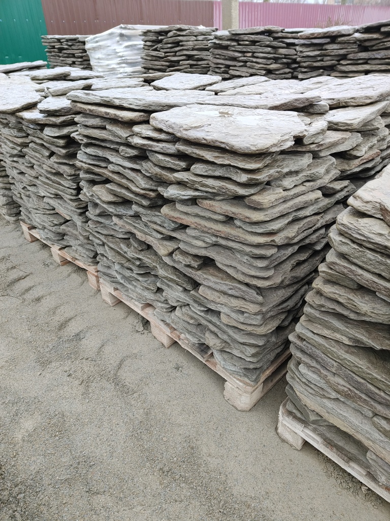 Плитняк песчаник дракон серо-зелёный галтованный для облицовки цоколя, отмостки 20-35 мм
